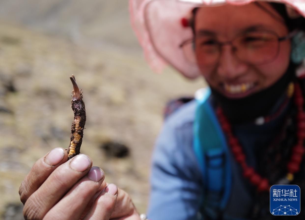 5月25日,牧民在采集蟲草。新華社記者 晉美多吉 攝