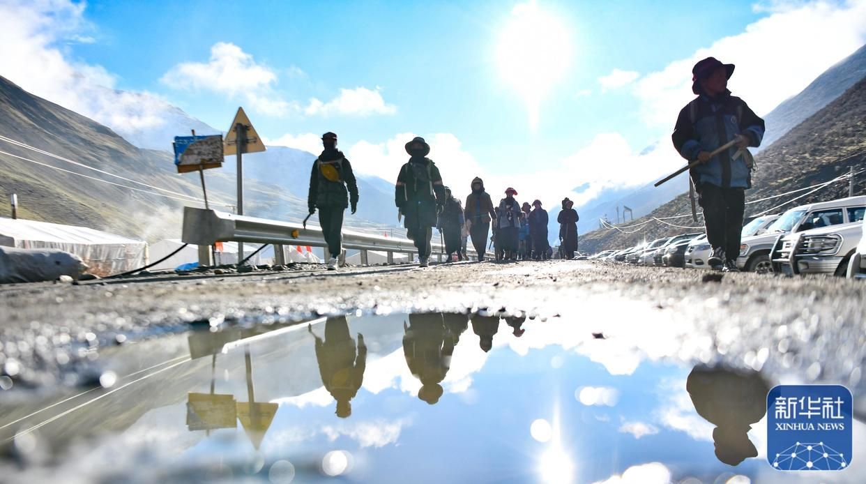 清晨,西藏那曲市比如縣良曲鄉(xiāng)然木塘村蟲草采集點(diǎn)的人們統(tǒng)一前往山上采集蟲草(5月26日攝)。新華社記者 晉美多吉 攝