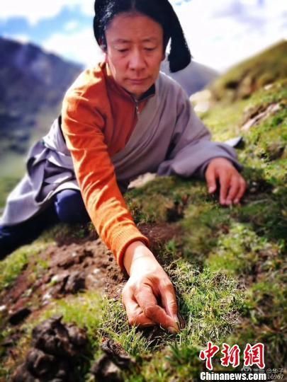 圖為近日,貢嘎在采挖蟲草。那曲市娜秀冬蟲夏草商貿(mào)有限公司 供圖