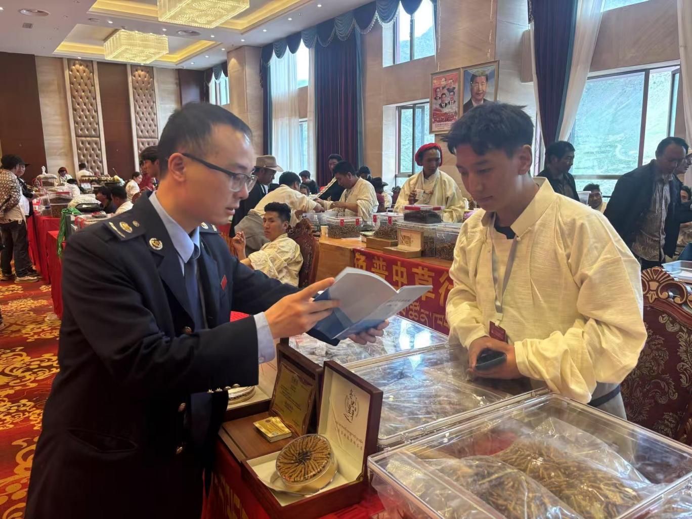 在蟲草交易活動開始前,兩縣稅務(wù)局開展了“稅惠政策答疑小課堂”,把“晦澀條文”解讀成大家都能聽懂的“明白話”,確保商戶“懂政策、會運用”,精準(zhǔn)享受稅惠政策紅利。同時,在交易現(xiàn)場設(shè)立“蟲草辦稅答疑崗”,聚焦解答發(fā)票開具、免稅認(rèn)定等高頻疑難問題,輔導(dǎo)商戶操作電子稅務(wù)局,“即問即答+實操輔導(dǎo)”雙管齊下,讓商戶“少跑腿、快辦稅”。