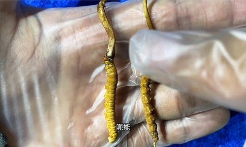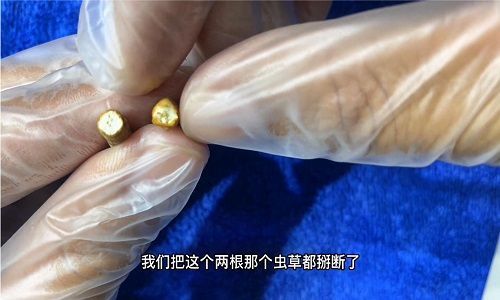 四、我們把這個(gè)兩根那個(gè)蟲草都掰斷了,有的人說就是網(wǎng)上說很多是人工的沒有消化腺,