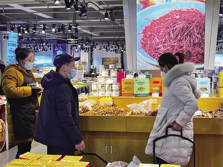 1月9日,記者來到西藏特產(chǎn)倉儲(chǔ)超市(乃倉店)進(jìn)行實(shí)地走訪。走進(jìn)超市,牦牛肉干、藏紅花、藏香豬肉、酥油茶、靈芝孢子粉等數(shù)百種西藏特產(chǎn)讓人眼花繚亂。雖是工作日,但前來購買特產(chǎn)的市民絡(luò)繹不絕。“馬上過年了,想挑選一些西藏特產(chǎn)帶回去。”前來購買特產(chǎn)的李女士說,“今天主要買了西藏本地產(chǎn)的蟲草酒和藏蜜,送長輩很合適。”