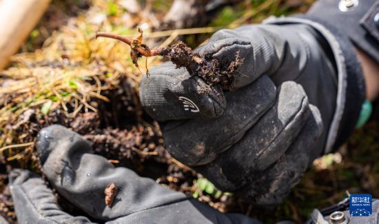 這是在那曲市索縣西昌鄉(xiāng)拍攝的剛採(cǎi)挖出的蟲草(5月18日攝)。新華社記者 丁增尼達(dá) 攝