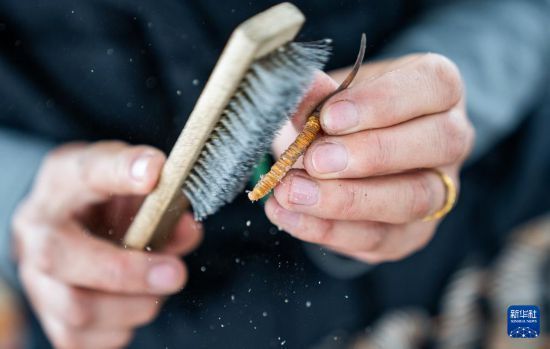 在那曲市索縣西昌鄉(xiāng),牧民將清理好的蟲草裝袋收納(5月18日攝)。新華社記者 丁增尼達(dá) 攝