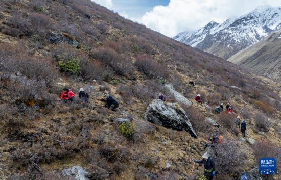 在那曲市索縣西昌鄉(xiāng),牧民在尋覓採(cǎi)挖蟲草(5月18日攝,無人機(jī)照片)。新華社記者 丁增尼達(dá) 攝