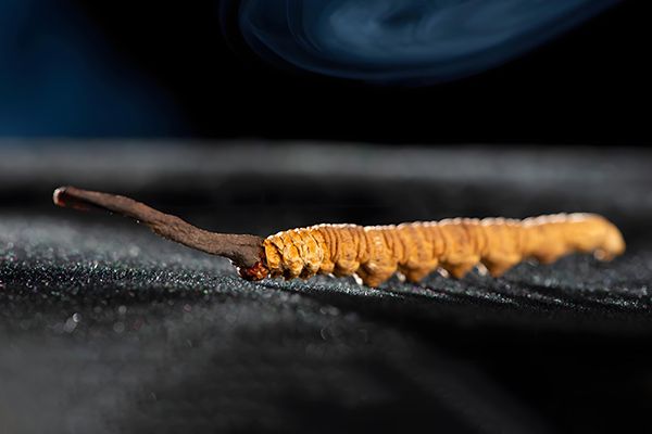 當(dāng)冬季來臨,土壤中的冬蟲夏草菌孢子會遇到蝙蝠蛾幼蟲,孢子通過幼蟲的體壁侵入體內(nèi),逐漸吸收幼蟲的營養(yǎng)并萌發(fā)菌絲。菌絲在幼蟲體內(nèi)不斷生長,最終布滿幼蟲全身,導(dǎo)致幼蟲死亡,其軀體形成一個 “菌核”(即冬蟲夏草的 “蟲體” 部分)。